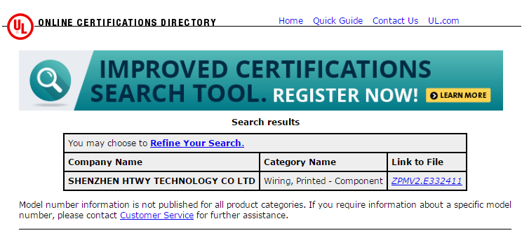 我們的UL認(rèn)證E332411可在UL網(wǎng)站上找到。(UL查詢網(wǎng)址:http://database.ul.com/cgi-bin/XYV/template/LISEXT/1FRAME/index.html)